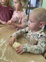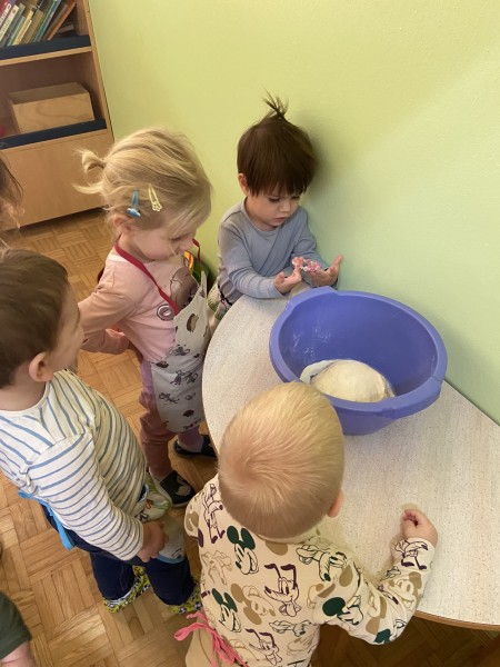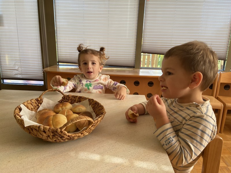 V mesecu novembru smo v skupini 1 - 3 let spoznavali in raziskovali kako iz zrn žita nastane kruh in ostali pekovski izdelki. Malčki so sodelovali v celotnem procesu in z navdušenjem ter radovednostjo pričakovali pečen pekovski izdelek. Po vrtcu je hitro zadišal omamen vonj sveže pečenih žemljic. Ponosni smo bili na svoje delo in rezultat svojega truda.