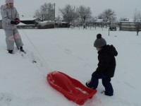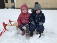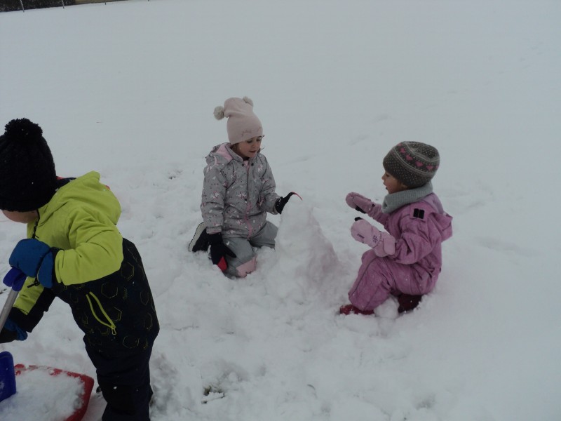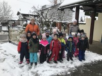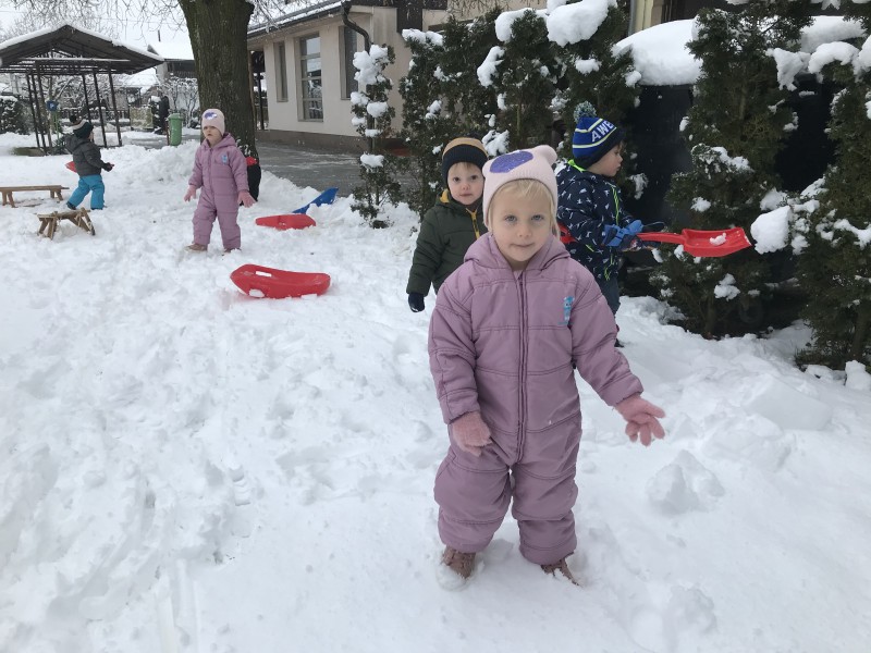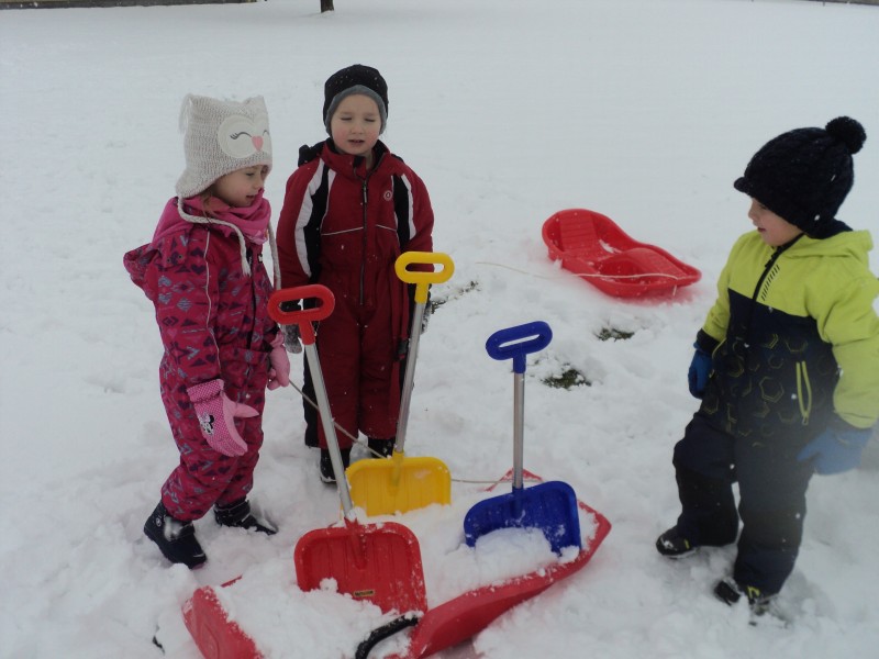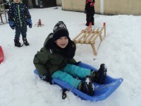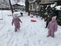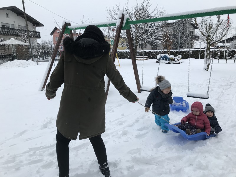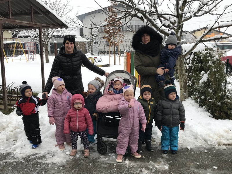 Zasneženo jutro nas je razveselilo, zato ni bilo niti kanček dvoma kako bomo dopoldan preživeli. Na snegu je bilo polno veselja, mrzlih rokic, rdečih ličk in snežnih izkušenj. Upamo, da bomo z zimskimi radosti nadaljevali še jutri…