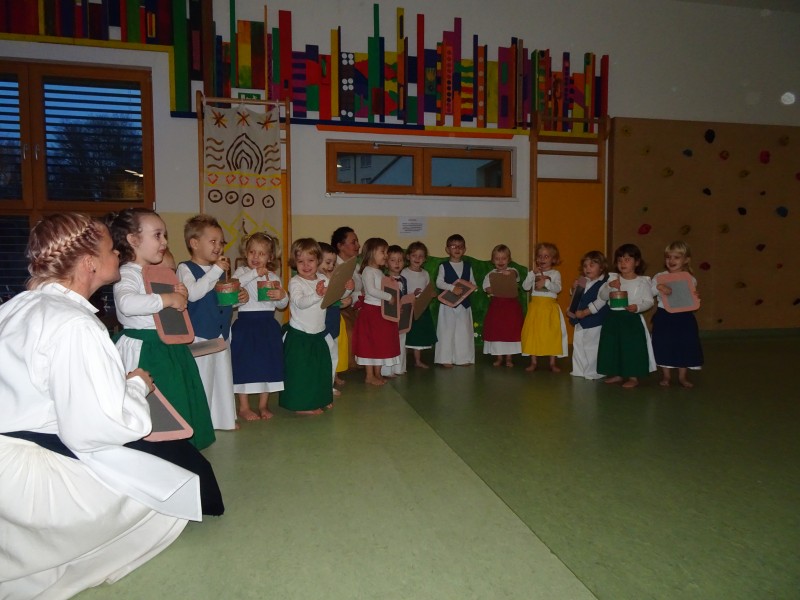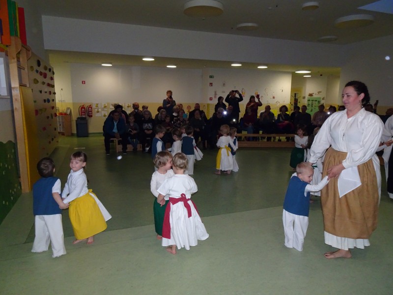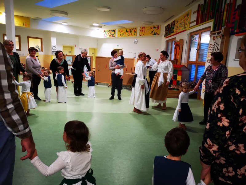 »Kak fejst sta pomembniva babica pa dedek, ka fse dovolita, nan znajo povedate tűde naši najmljaše. Pravijo, ka so najbole vesele te, gda se lejko stisnejo v njihov objem. Znate kak pravijo, ka objemi zdravijo tiste, keri jih davlejo pa tűde tiste, keri jih prejemajo. Majo čudežno mouč pa delajo nas srečne. V zahvalo za tou, smo jin pripravile kratke program, keri jih je bar za moment odpelo v njihovo otroštvo«.