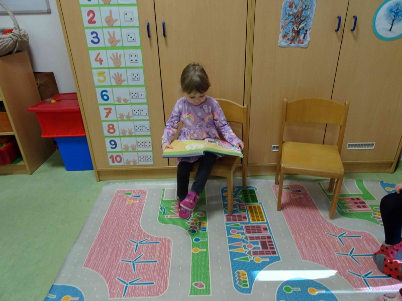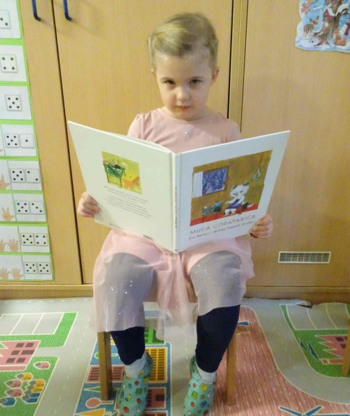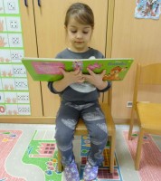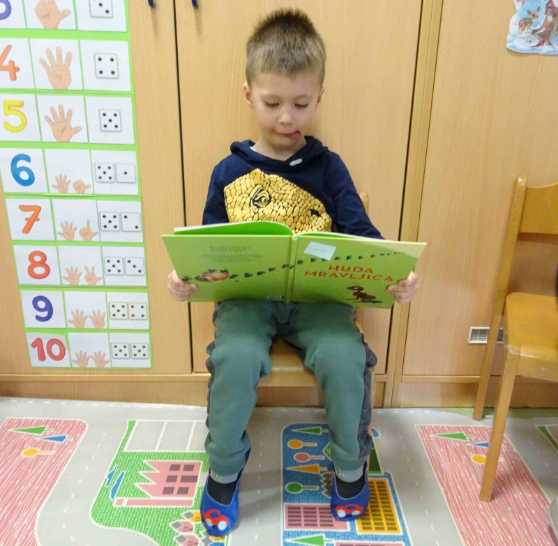 V sklopu obravnavane tematike so otroci v vrtec prinesli svojo najljubšo knjigo. Vsebino so na kratko predstavili svojim prijateljem. Tako smo spoznali različne pravljice, pesmi in stripe. Po pripovedovanju je vsak otrok narisal svojega junaka iz knjige.
