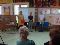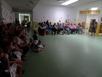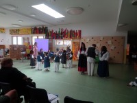 Današnji dan smo začeli s plesno, pevsko in dramsko delavnico. Nadaljevali smo s pripravo razstave.