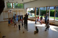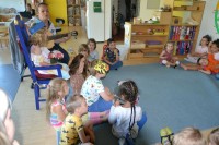 Danes smo se aktivno vključevali v dejavnosti, ki so potekale tekom dneva. Z jogo za otroke smo jih popeljali v svet Afrike, jim posredovali zgodbico o Medvedu in prijateljstvu ter jih pospremili v mesto na sladoled. Danes je bil še prav poseben dan za deklico, ki je skupaj z nami praznovala svoj 6. rojstni dan.