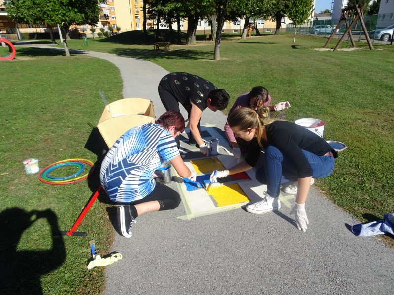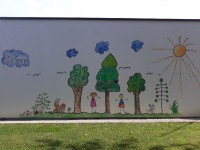 V naši enoti smo se odločili, da v tednu otroka le te obdarimo na prav poseben način. Strokovni delavci enote smo organizirali delovno akcijo in smo asfaltne površine opremili z različnimi igrami. Nastala je tudi slika, ki krasi fasado našega vrtca... .