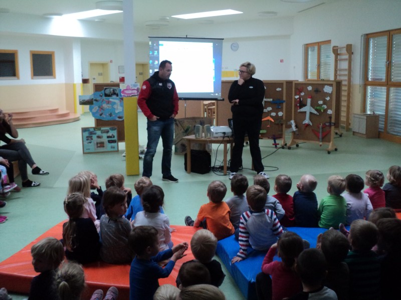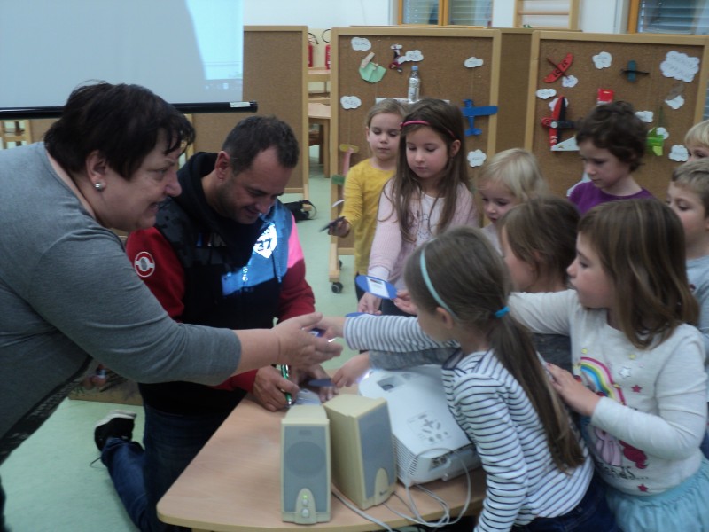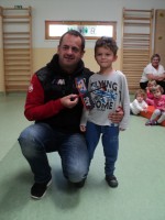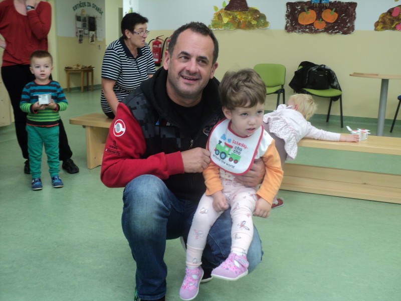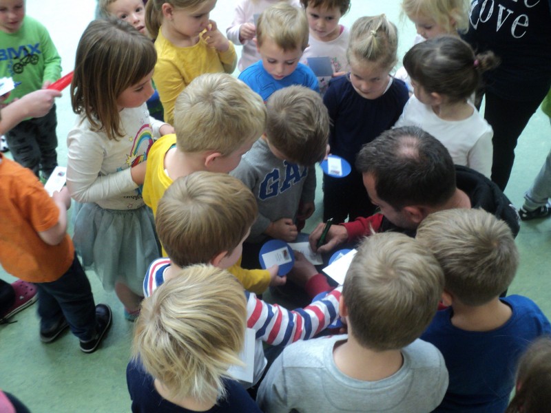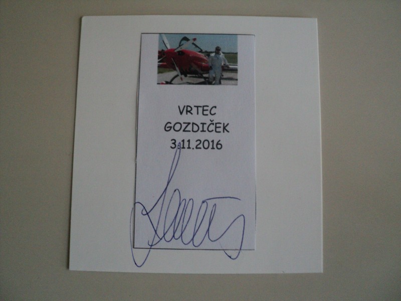 Pa ni priletel z letalom, pripeljal se je z avtomobilom, nasmejan in prijazen. Z njim smo se pogovarjali o skrivnostih letenja, odgovoril je na vse naše radovedne zakaj-e, se z nami fotografiral in nam podaril frizbije ter avtograme. V zahvalo smo ga razveselili z deklamacijo in mu podarili sliko. Preživeti dopoldan z njim je bilo čarobno, kot je čarobno njegovo letenje.
