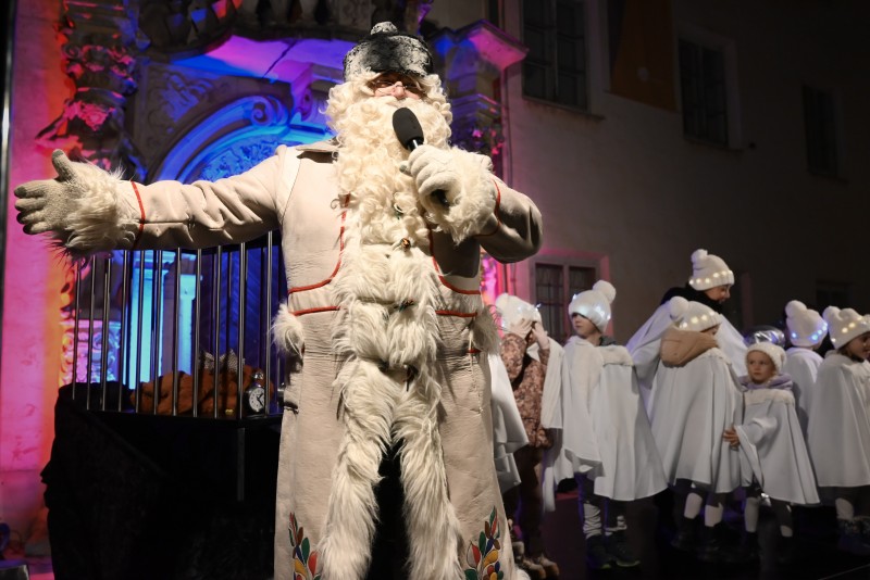 Ko je tema prekrila naše mesto, smo se majhni in veliki z lučkami podali na pot do grajskega dvorišča, kjer smo pričakali Dedka Mraza.