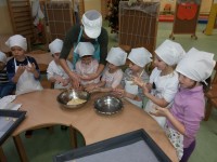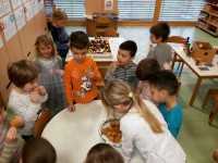 Kuharica Simona nam je zamesila medeno testo, mi smo pa oblikovali medenjake. Z njimi smo se tudi posladkali...