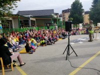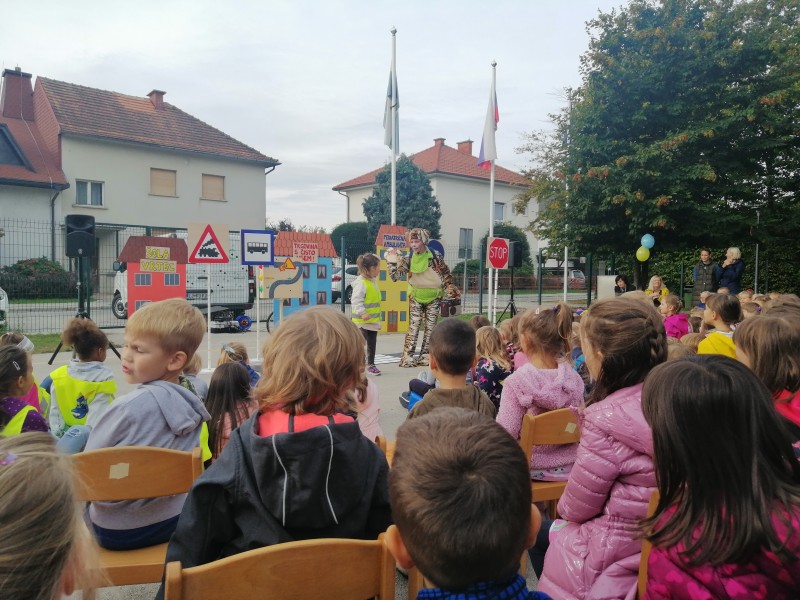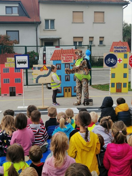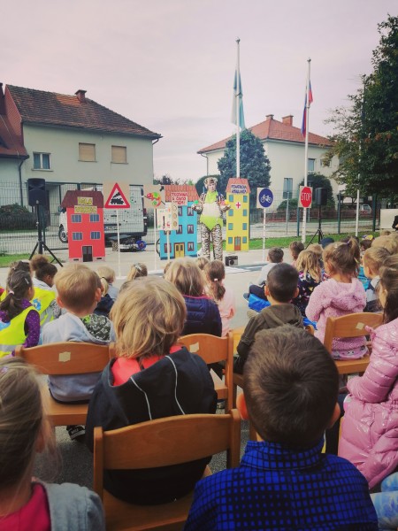 Ogledali smo si predstavo gledališča Ku-kuc in si skupaj s "tigrom" obnovili znanje varnosti v prometu.