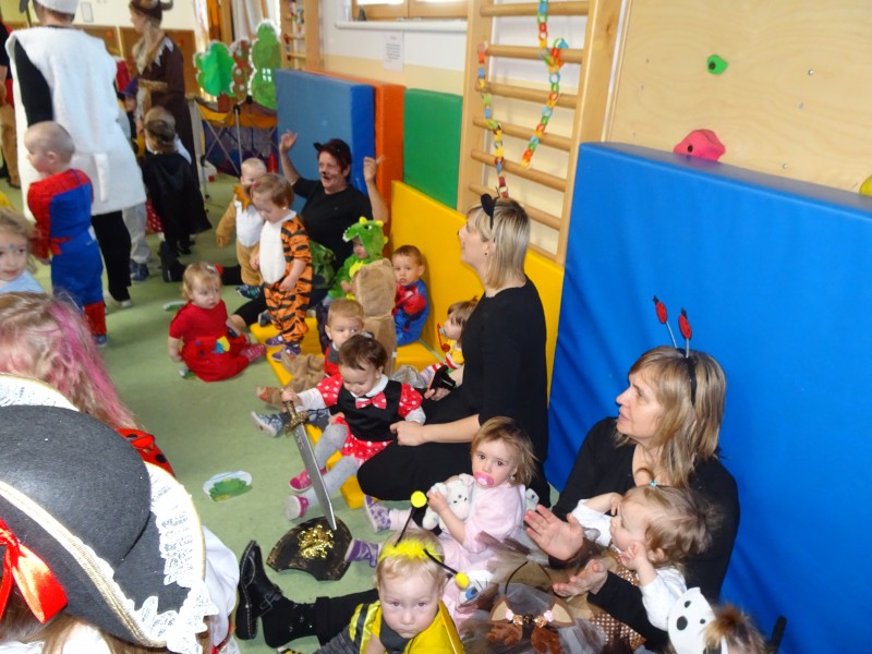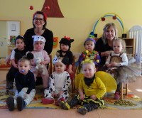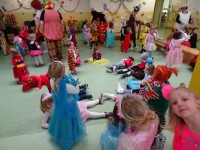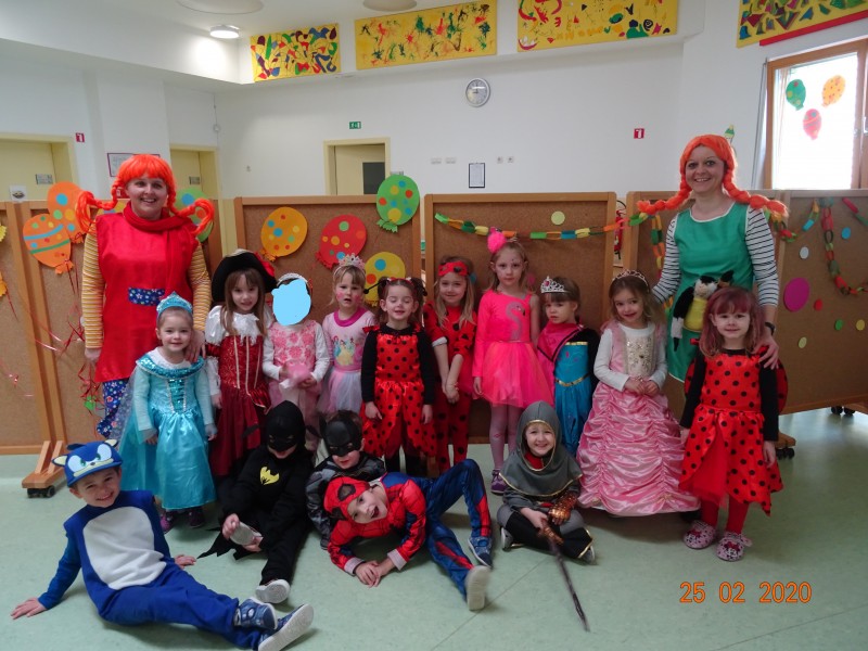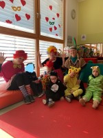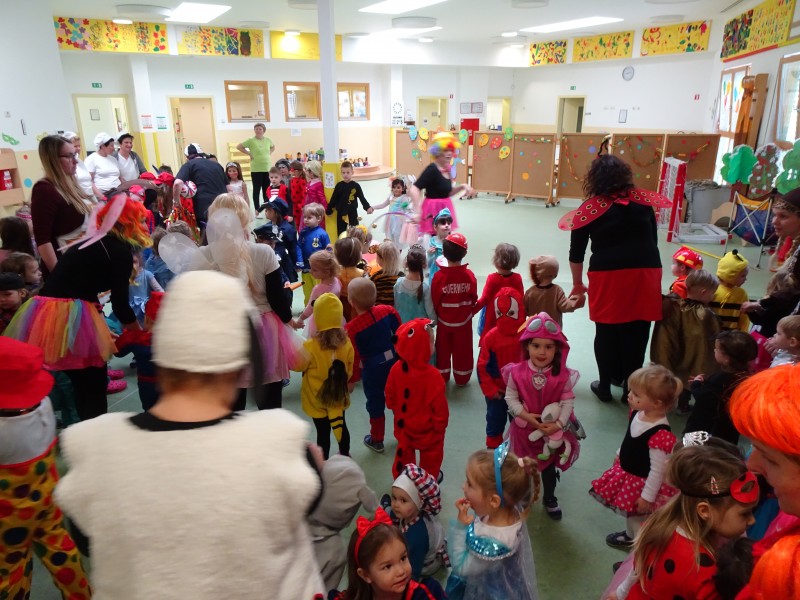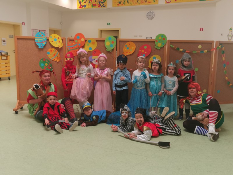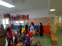 V Gozdičku smo Pust nestrpno pričakovali. Pisano smo si okrasili igralnice in skupni prostor v vrtcu. Vse je bilo v znamenju klovnov, karnevala in norčij. Uvod v pustni čas smo pričeli s karnevalskimi igrami v skupnem prostoru, kjer smo hranili lačne klovne, ciljali pustno strašilo, podirali zid super junakov in se zabavali kot na pravem karnevalu.