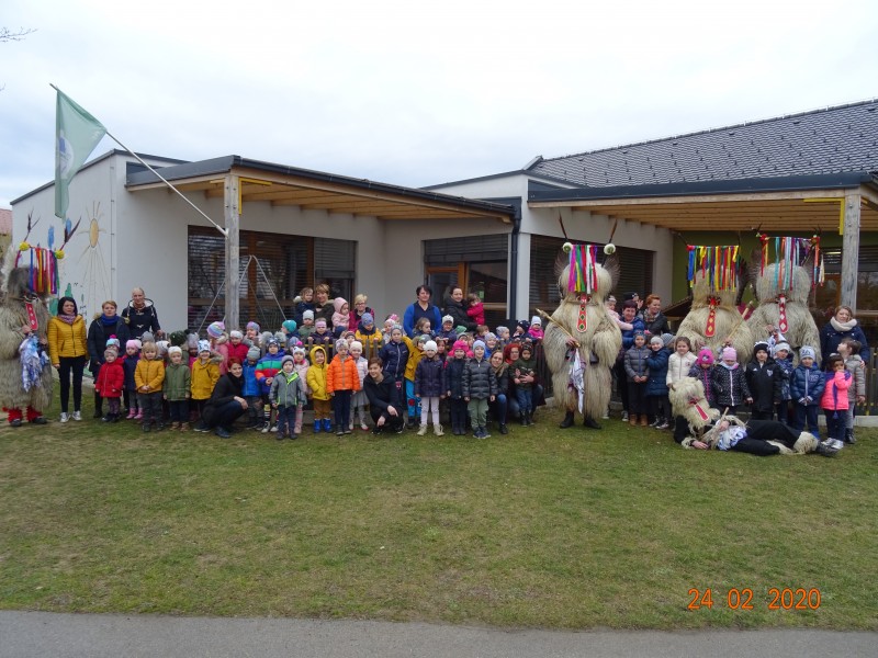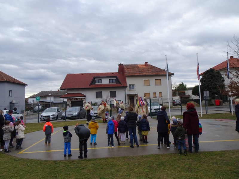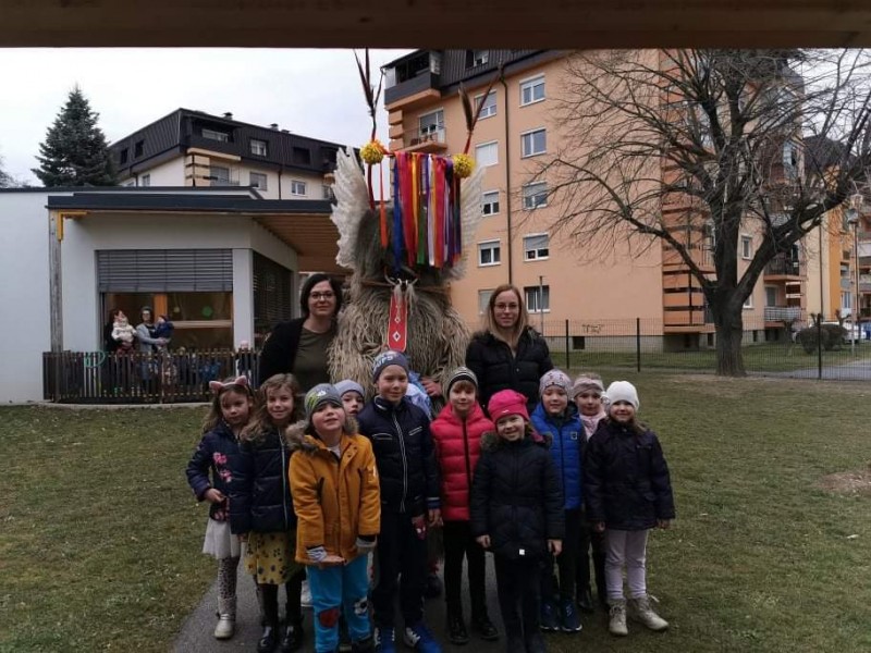 Pogumnejši otroci iz starejših skupin so se veliko pogovarjali tudi o etnografski maski kurent. Izdelali so kurentove maske iz različnih materialov in z njimi polepšali vrtčevski hodnik. Zato smo bili vsi še posebej navdušeni, da so nas na pustni ponedeljek obiskali čisto pravi Kurenti iz Markovc pri Ptuju, ki so s svojimi zvonci in plesom dokončno pregnali zimo.
