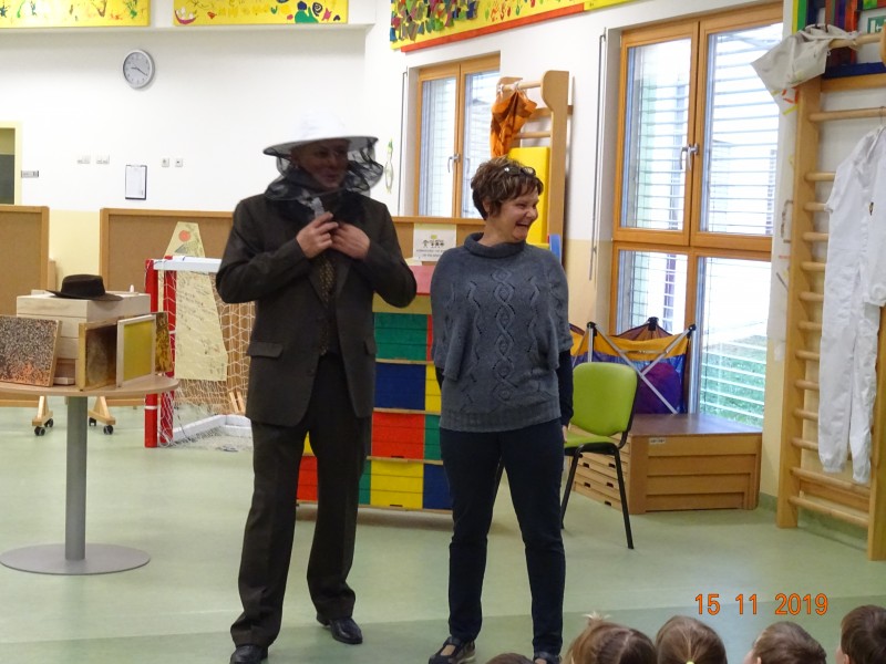 ... v ta namen sta nas obiskala čebelar in čebelarka in nas naučila veliko novega o čebelah in o tem kako čebelarji pridobivajo med.