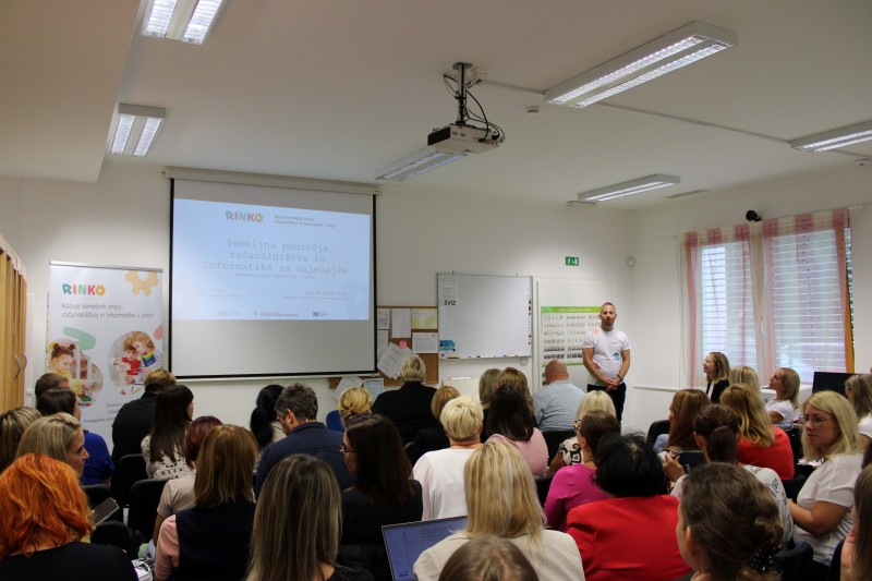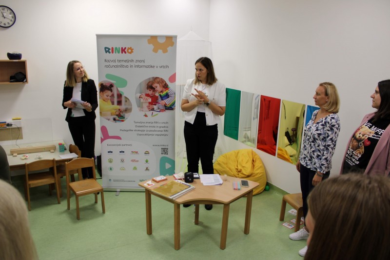 V sklopu projekta RINKO – posredovanje temeljnih znanj računalništva in informatike v vrtcih, brez uporabe zaslonov, smo danes v vrtcu Gozdiček gostili vse sodelujoče partnerje v projektu. Udeležili smo se izobraževalnih delavnic na temo »Učinki računalništva in informatike«.