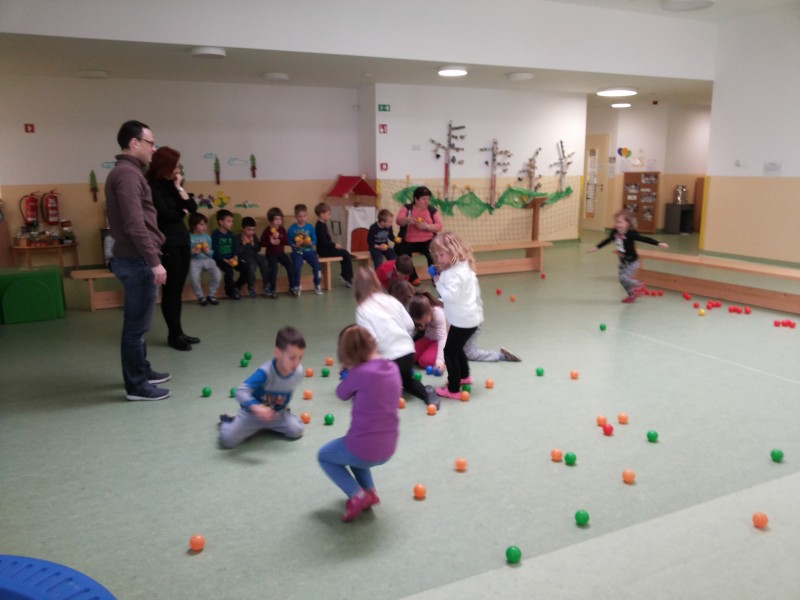 V našem vrtcu nas je obiskal g. Damjan Šebjan, ki nam je približal znakovni jezik. Preko igre smo spoznali znake za barve, ploskanje in še kaj... . Veseli smo, da smo spoznali to obliko komunikacije in začutili, da se tudi z znakovnim jezikom lahko "pogovarjamo"... .