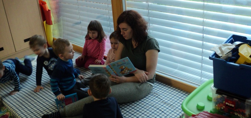 Ob prihodu sledi objem, potem igra, igra, igra …  konstruiranja, z lutko, ustvarjanja, štetja, prirejanja … sledi sprehod z bibo, razgibavanje – igre na prostem...