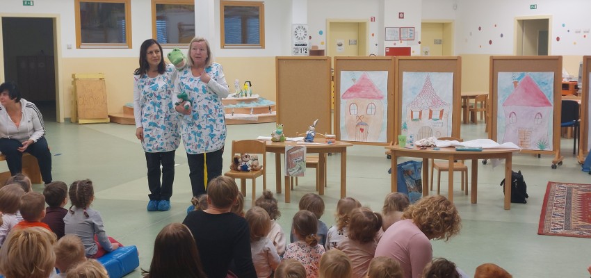 Obiskale so nas zobne asistentke in krokodil Kroki. Predstavili so nam poučno zgodbo o čiščenju zob ter nas naučili pravilnega ščetkanja.