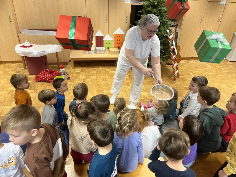 Otroci so vsebinam sledili z veliko skledo radovednosti in veliko žlico dobre volje, s čimer so soustvarjali praznično vzdušje v našem vrtcu.