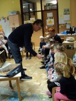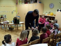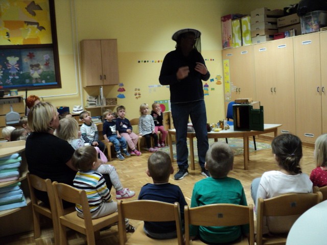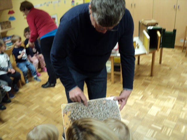 V četrtek nas je obiskal čebelar, g. Andrejč, ki je otrokom predstavil na njim primeren način življenje in delo čebel. Poleg tega nam je predstavil tudi poklic čebelarja, njegovo dejavnost in kaj potrebuje pri svojem delu. Svoj obisk je obogatil tudi s čebeljimi proizvodi, na koncu pa smo se še malo posladkali. Uganete s čim?