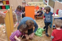 S preureditvijo bralnega kotička skupaj z otroki, smo pripravili vabljivo, udobno in toplo domače okolje. V kotičku si bomo razvijali socialne spretnosti skozi interakcijo s svojimi vrstniki. Učili se bomo kako sodelovati in kako zaupati. Otroci bodo sami izbirali, se aktivno igrali, uporabljali materiale, sodelovali, skrbeli drug za drugega in prevzemali odgovornost.