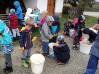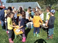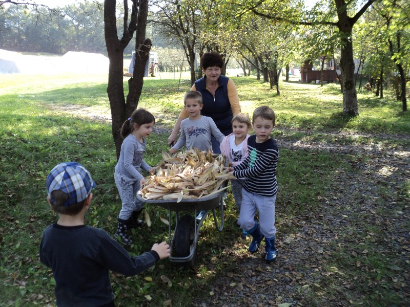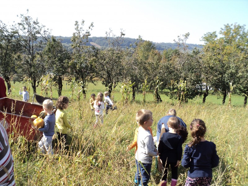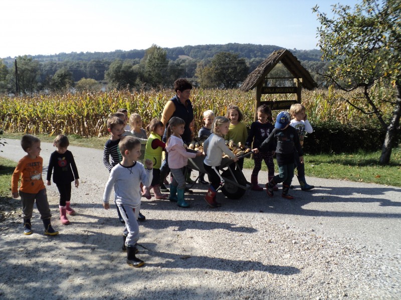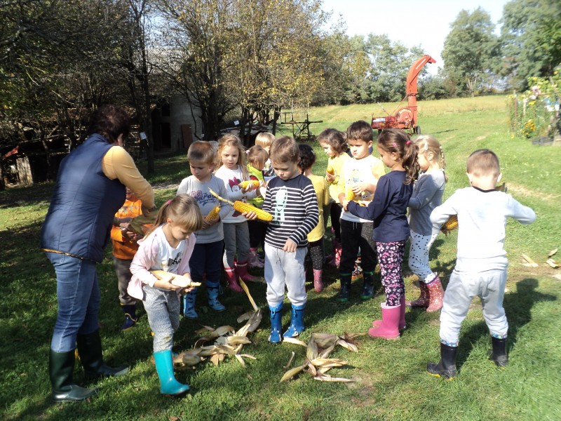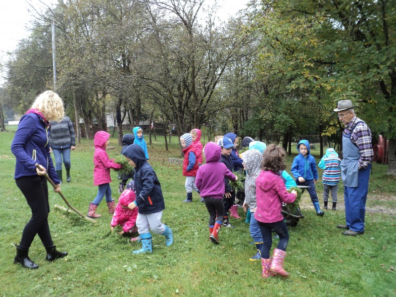 Različne dejavnosti in igra sta nam dajali možnost raziskovanja žive in nežive narave na polju, ob jezeru, v gozdu in na sami kmetiji.