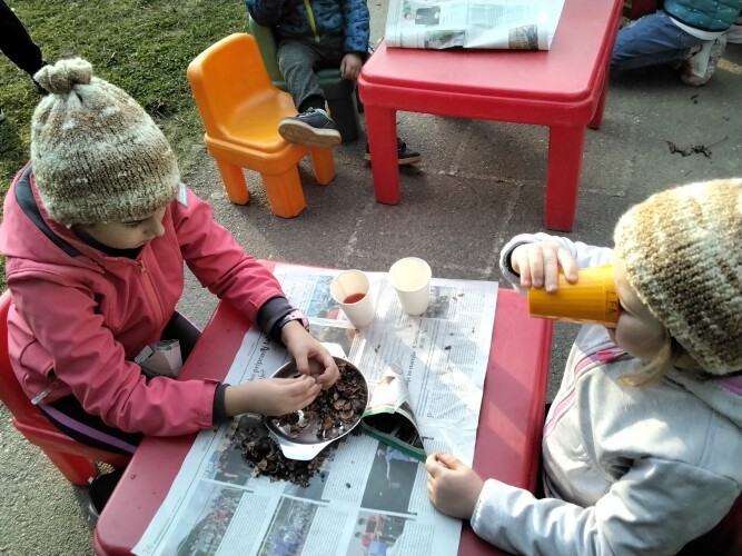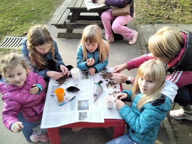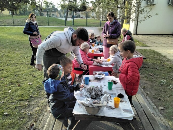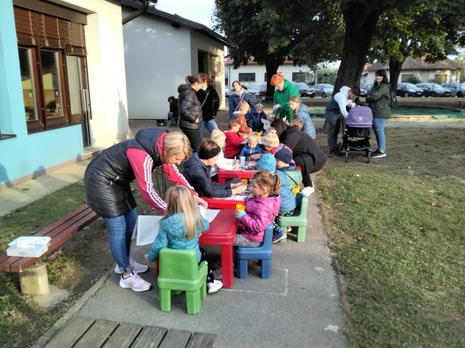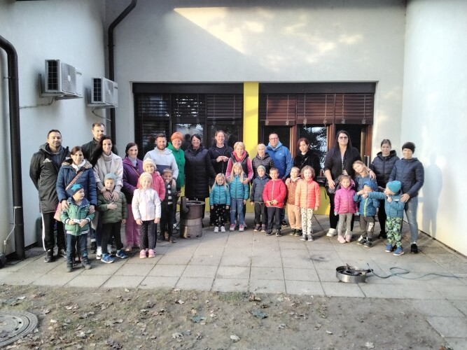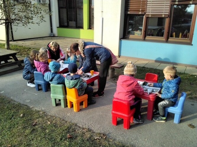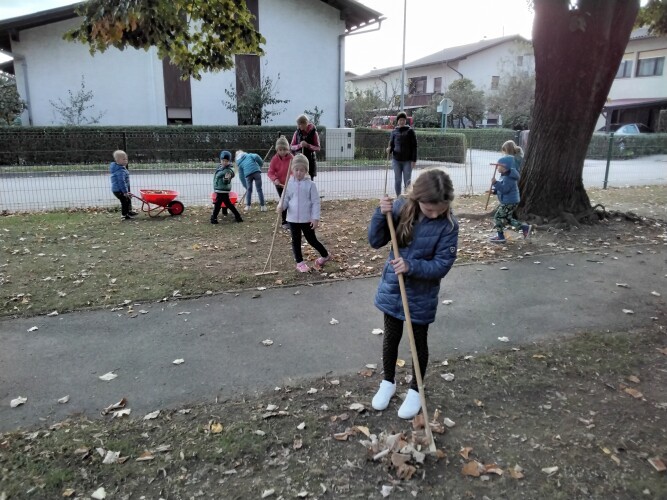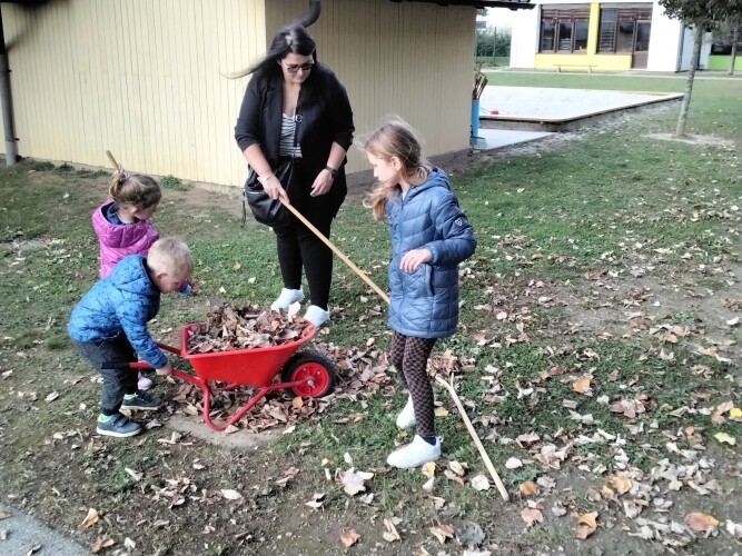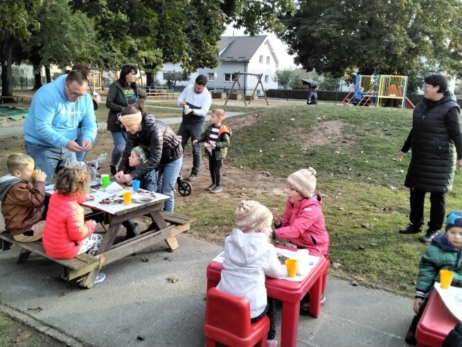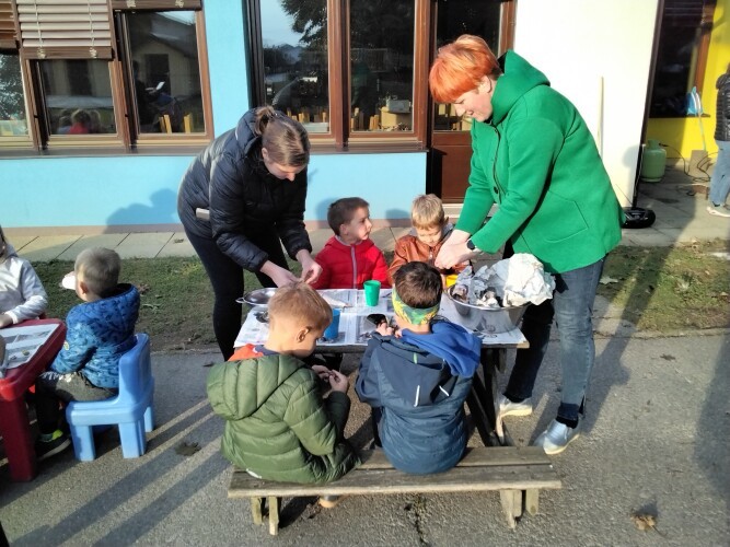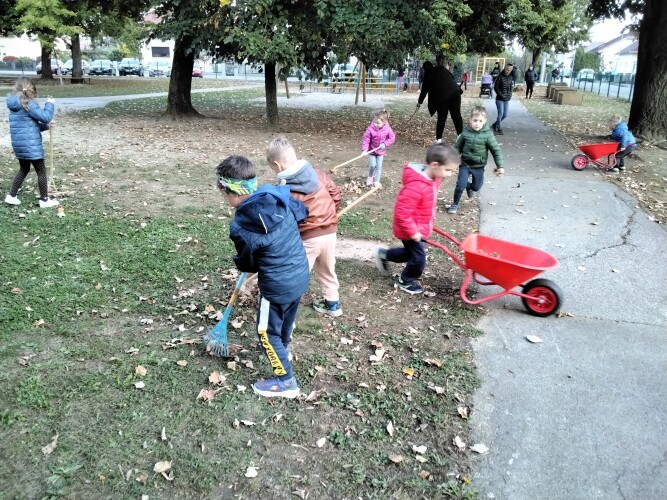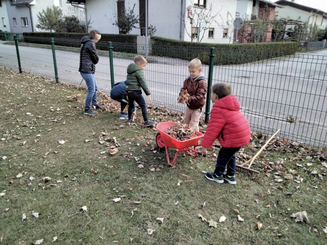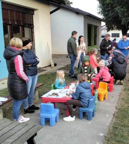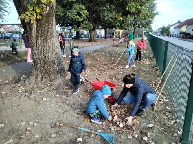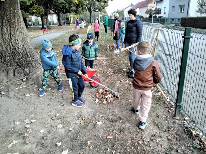 Toplo jesensko popoldne smo izkoristili za grabljanje listja in pripravo hiške za ježka na vrtčevskem igrišču. Otroci skupaj s starši, so se kar nekaj tednov pripravljali na ta dan… (z nabiranjem kostanjev). Tako je tudi pri nas zadišalo po pečenih kostanjih, s katerimi smo se posladkali po uspešno opravljenem delu.