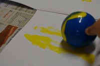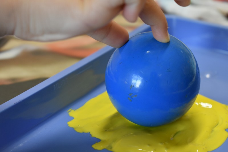 Vse se je začelo s kroglo, ki se je nekega dne zapackala z barvo in na bel list papirja naredila odtis, natančneje točko. Od takrat naprej smo v naši skupini raziskovali in spoznavali zmožnosti krogle oz. se spraševali in ugotavljali kaj vse krogla lahko počne ali zmore.