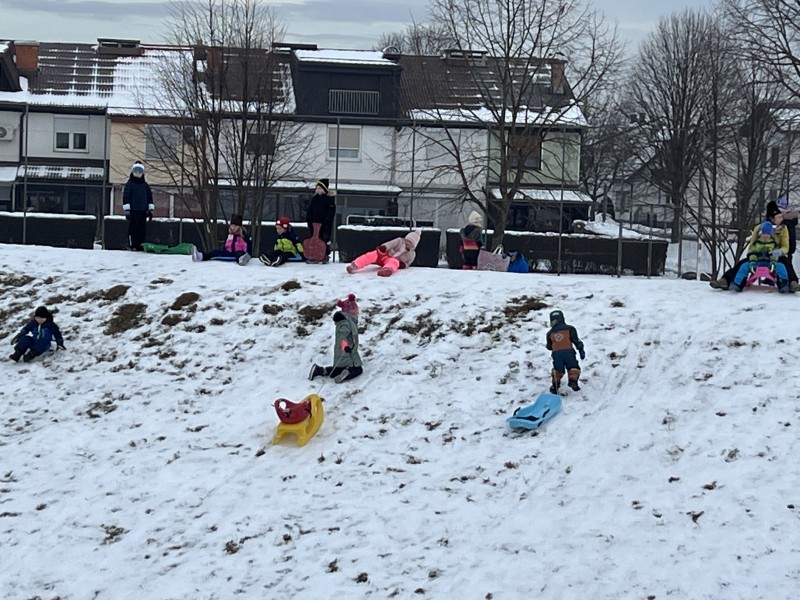 Ko smo otrokom obljubili sankanje na Kanalu, so se v očeh prižgale iskrice pričakovanja. In ob pravem zimskem dnevu je obljuba postala resničnost. Kanal nas je pričakal v snežni preobleki. Mrzli noski, rdeča lička in nasmeški do ušes so dokaz, da smo se imeli nepozabno. V vrtec smo se vrnili prijetno utrujeni, polni lepih doživetij in spominov, ki bodo še dolgo greli naša srca.