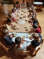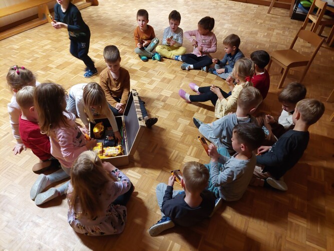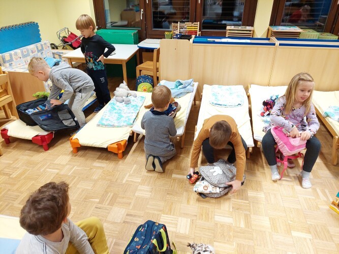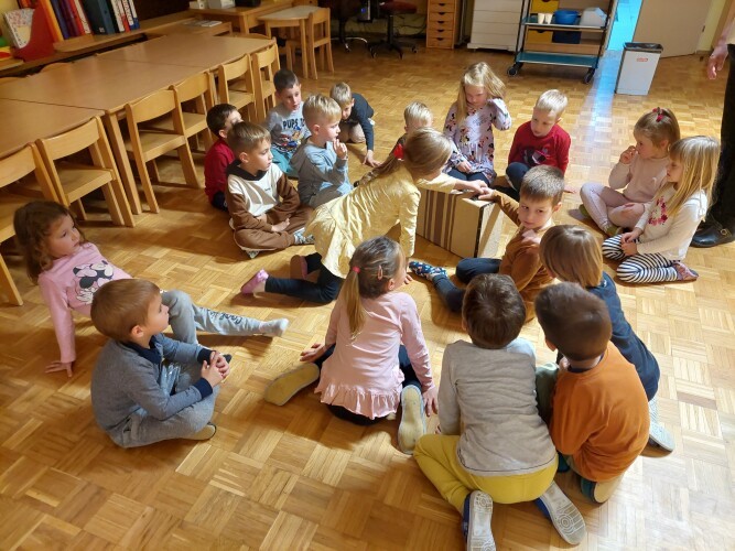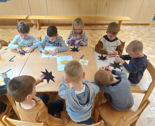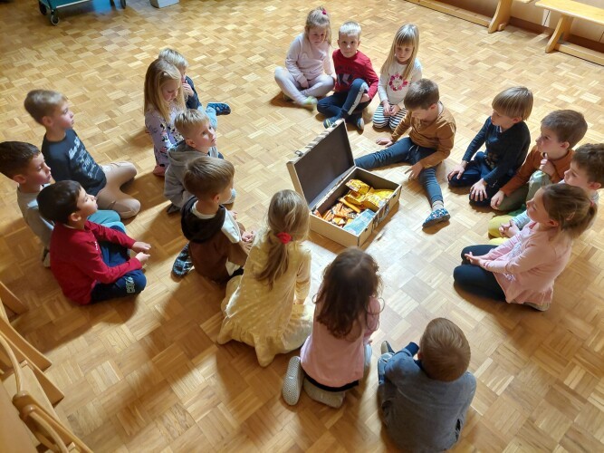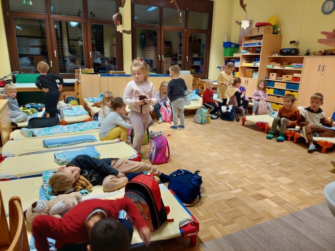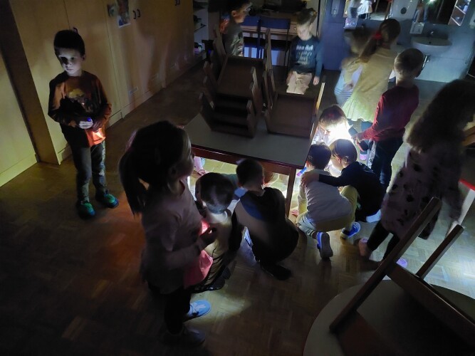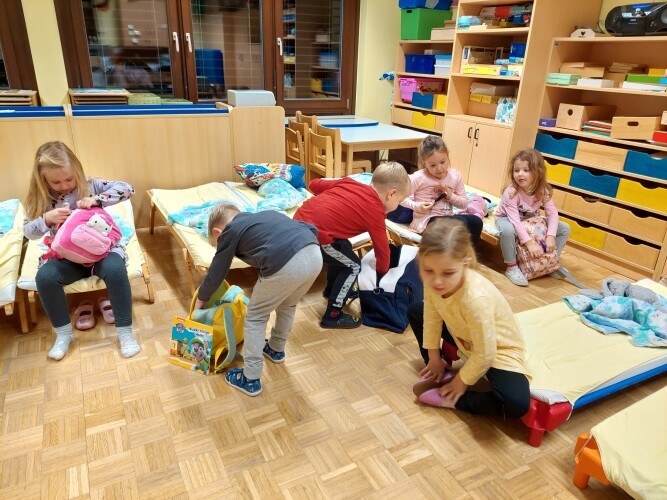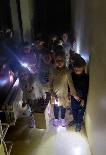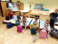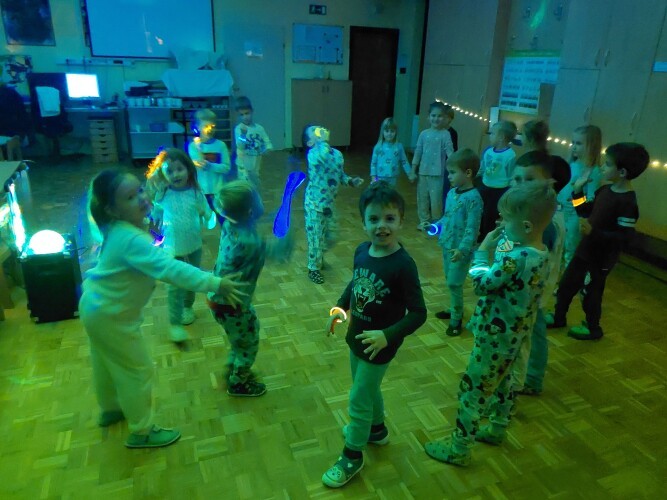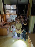 Večerne urice v vrtcu nam je popestrilo iskanje palčka Piskalčka, ki je ravno ta dan prespal v našem vrtcu. Čeprav smo ga prebudili iz spanja, je z veseljem z nami delil svoje dogodivščine. Da je bil večer še bolj pester in zanimiv, smo si pripravili pižama parti, ki je trajal pozno v noč. V prijeten spanec nas je popeljala pravljica pod »Zvezdnatim nebom«.
