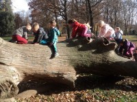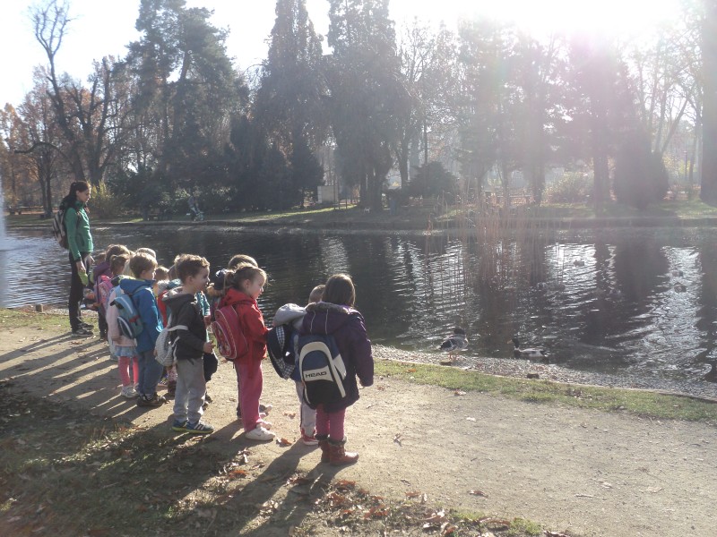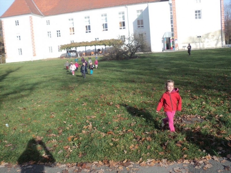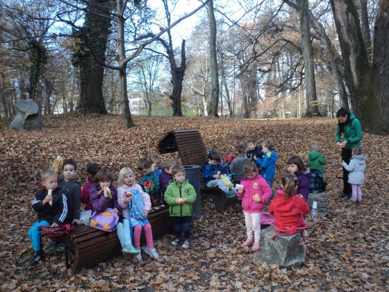 Po zajtrku smo se, opremljeni z nahrbtniki in malico, odpravili proti mestnemu parku. Najprej smo si privoščili vsebino nahrbtnika, nato pa se podali po parku. Otroci so tekli, plezali, opazovali, raziskovali in uživali v igri s prijatelji v čudovitem jesenskem dopoldnevu.