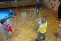 Skupinske dejavnosti z žogo spodbujajo tudi sodelovanje med otroki, spoštovanje pravil in strpnost.