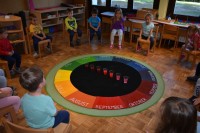 Rumena, rdeča, modra in zelena so štiri barve, ki v letnem krogu simbolizirajo letne čase. V novem vrtčevskem letu smo se osredotočil ravno na te štiri barve, ki jih povezujemo z letnimi časi, na malo drugačen način. Torej letne čase spoznavamo s pomočjo mešanja barv in prepoznavanja svetlih in temnih odtenkov določene barve.