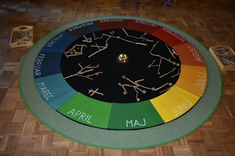 Tudi skupaj s starši smo na prvem roditeljskem sestanku pripravili mrežo okrog letnih časov, se s tem povezali in otrokom ponudili imenitno matematično in likovno dejavnost barvanja likov na letnem krogu, ki sedaj krasi našo igralnico. Hkrati nas pa opominja na to, da smo vsi skupaj povezani v cilju najboljše koristi za otroka in njegovega razvoja.