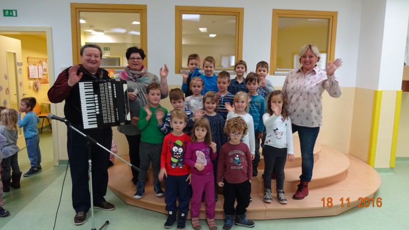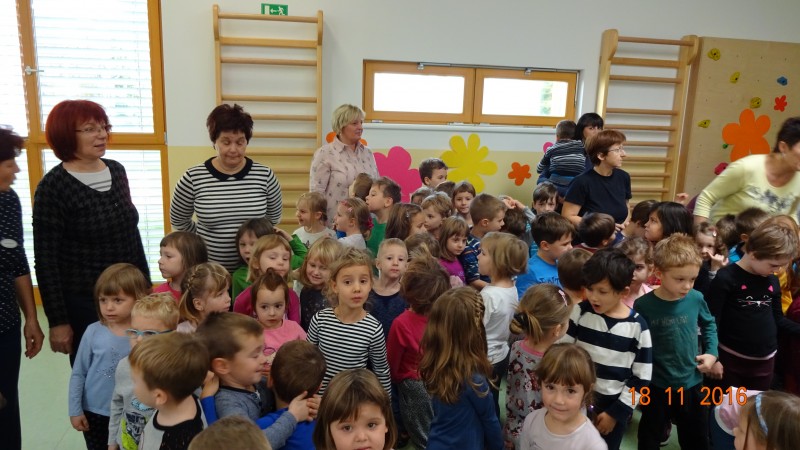 V petek pa smo skupaj z otroki iz cele Slovenije točno ob 10 uri zapeli pesem Čebelar. S harmoniko nas je spremljal Žanov dedek.