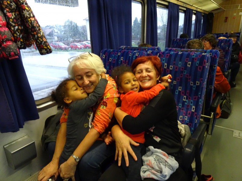 V slikanici Mojiceje Podgoršek smo našli "recept za ljubezen", ki pravi: Vsaj dva objema na dan, vsaj dva poljuba na dan in vsaj dvakrat reci: rad te imam. Po tem receptu smo se družili in objemali tudi z babicami in dedki med vožnjo z vlakom v Ljutomer. Objemi imajo čudežno moč in nas osrečujejo. To srečo smo izkusili tudi mi na tako deževen dan.
