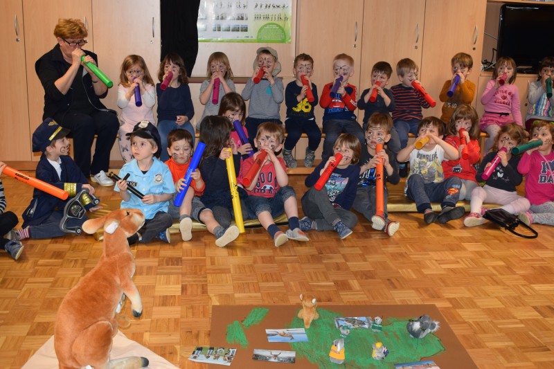 Pot z letaloma je bila zelo dolga, let je sicer bil presenetljivo miren in udoben. Takoj po prihodu smo si ogledali znamenitosti Avstralije, opazovali kenguruje in koale v naravi. Prisluhnili smo tudi tradicionalni aboridžinski glasbi. Na to nas je pot vodila proti Novi Zelandiji, kjer smo se srečali z Maori, skupaj z njimi zapeli pesmico Epo I Tai Tai E in zaigrali na zvočne cevi. Ob kocu smo še tekmovali v kengurujskem skakanju, bilo je zares zabavno. Naše potovanje smo zaključili z ananasovo sladoledno lučko, ki smo si jo pripravili sami.