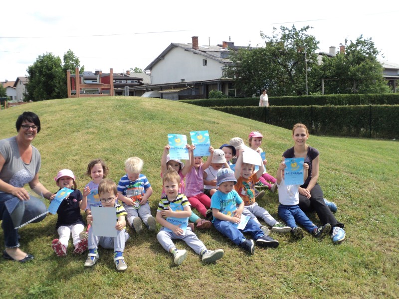 Priznanje Malega sončka ne dobiš kar tako! Skozi celo šolsko leto smo izvajali dejavnosti s področja gibanja, razvijali spretnosti in koordinacijo, grobo in fino motoriko… dnevno pa smo dajali velik poudarek na izvajanje naravnih oblik gibanj, ki so z našo starost temeljnega pomena (hoja, tek, plazenje, kotaljenje…).