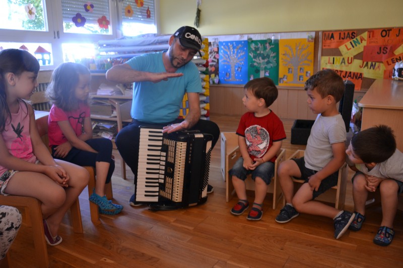 Mali ustvarjalci so doživljali umetnost igre, petja, igranja... z g. Mišom Kontrecem:
