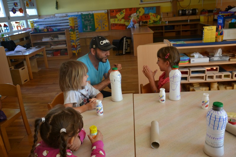 Dogovor z g. Kontrecem za naslednje delavnice - otroci doma igrajo z ropotuljami, ki so jih sami izdelali, ob naslednjem srečanju prinesejo ropotuljice v vrtec.