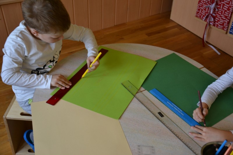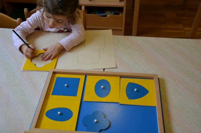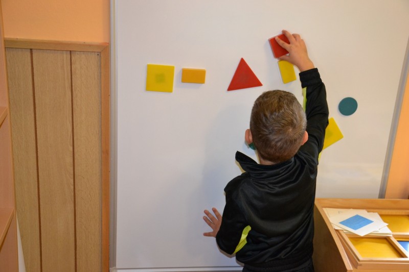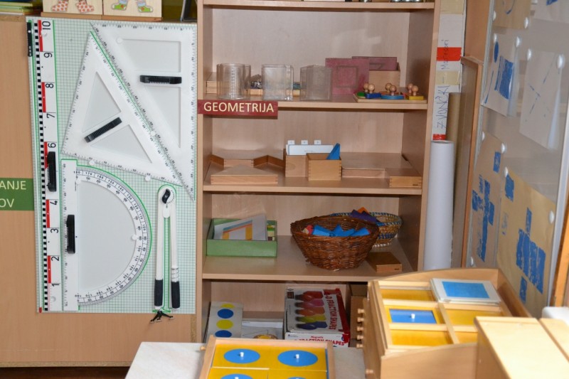 Otrokom dajemo možnosti in priložnosti za opazovanje, lastno aktivnost, primerjanje in analiziranje, ob pomoči odraslega. Didaktični materiali imajo določeno mesto v geometrijskem kotičku, kjer jih lahko vedno najdemo.