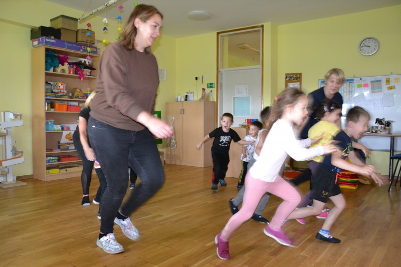 Petek nam je popestrila Barbara, ki nam je pripravila gibalno urico malo drugače. Za preživet dan z nami se ji lepo zahvaljujemo.