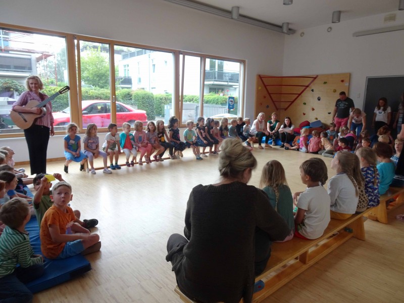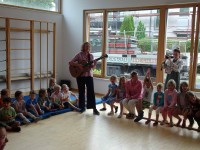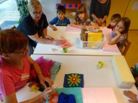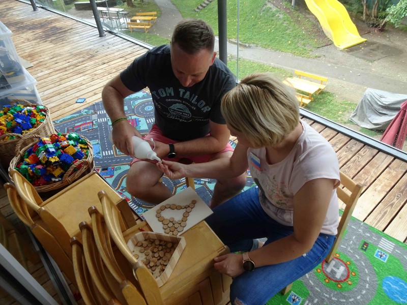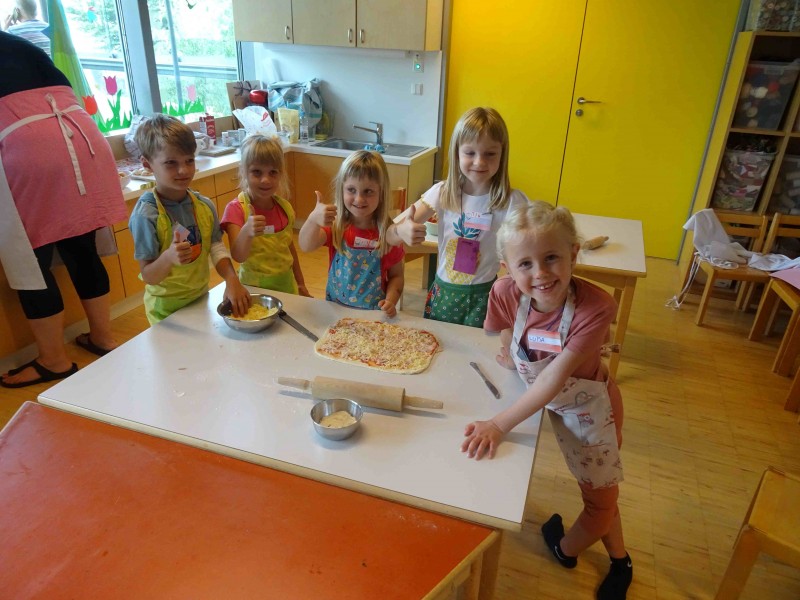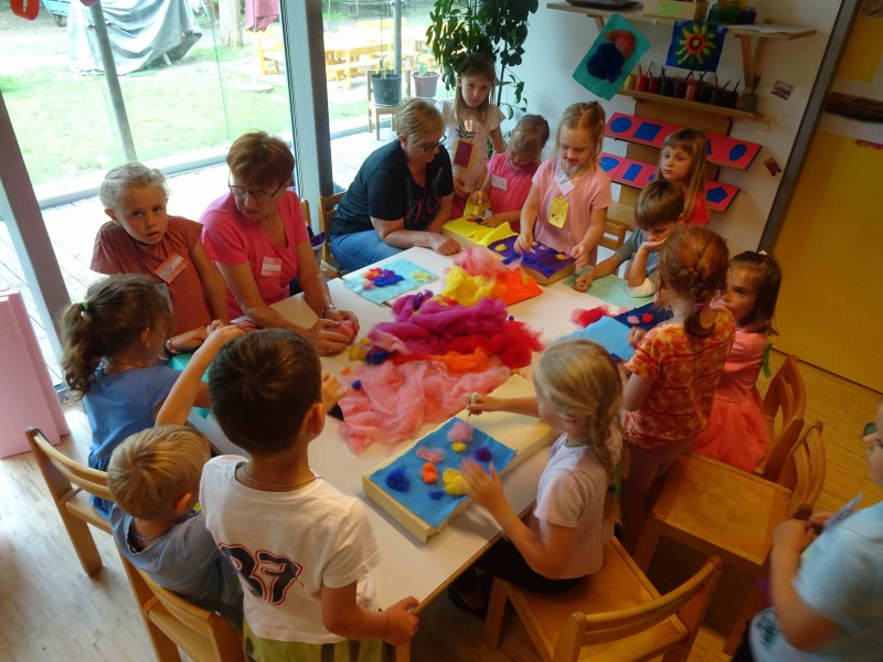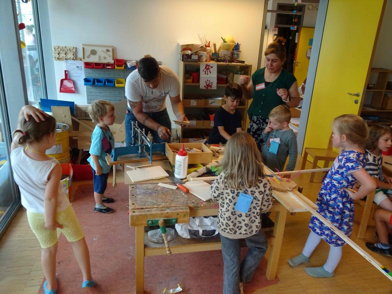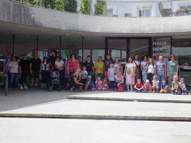 S skupnim druženjem in petjem smo začeli načrtovane aktivnosti današnjega dne. Nekaj naših otrok in staršev se je odpravilo v Umetnostno galerijo na ustvarjalne delavnice skupaj z otroki in strokovnimi delavci tukajšnjega vrtca. Ostali otroci in starši so nadaljevali z delom v pripravljenih delavnicah. V popoldanskem času smo si ogledali Haus der Natur - naravoslovno - tehnični muzej in center mesta z znamenitostmi. Jutri nas čaka zadnji dan našega druženja in pot proti domu.