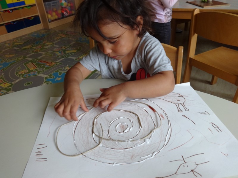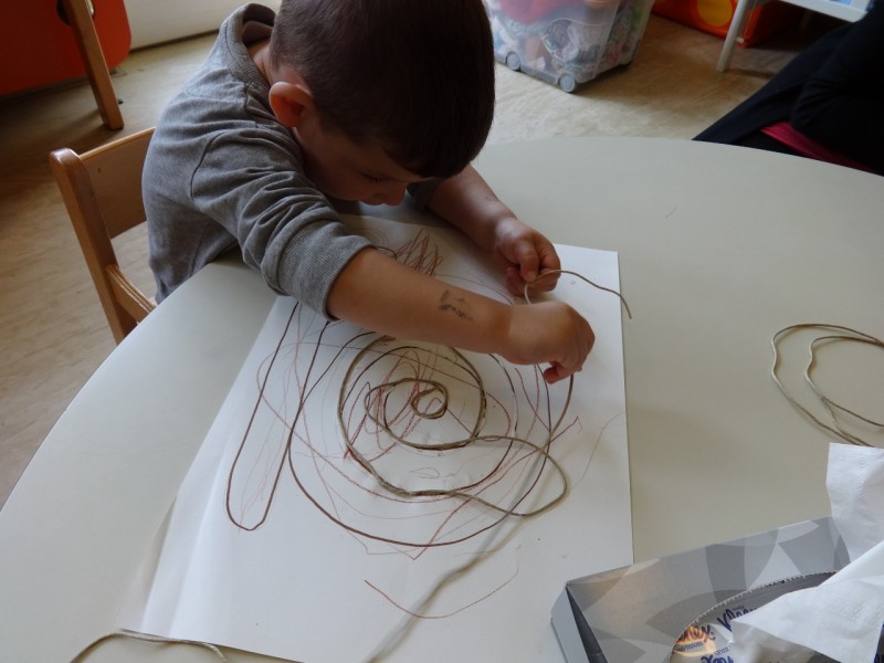 Med drugim smo polža oblikovali tudi iz das-mase, ga pobarvali in zvijali vrvico tako kot je zvita njegova hišica.
