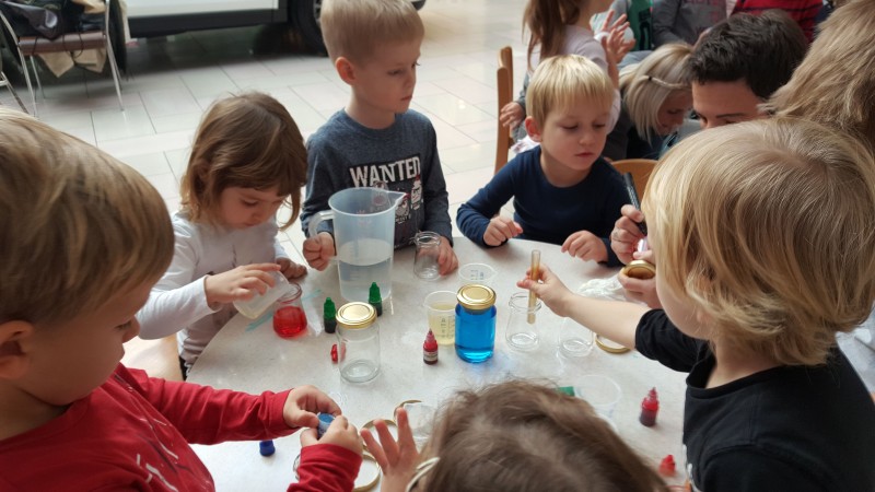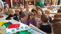 V vrtcu se zavedamo, da je potrebno začeti že dovolj zgodaj, z majhnimi koraki in s spodbudnim okoljem, ki otroke uvaja v zgodnje raziskovanje sveta, logično razmišljanje in jih postavlja v vlogo »malega znanstvenika«. Danes so se nam k delavnicam pridružili tudi otroci iz enote Gozdiček, ki so svet barv in njihovih lastnosti raziskovali na najrazličnejše načine, pri čemer so suvereno uporabljali svoje bogato znanje in izkušnje.