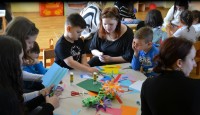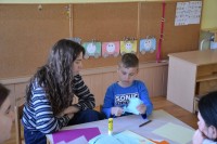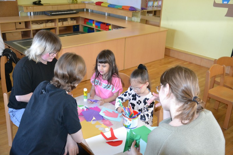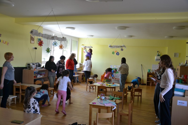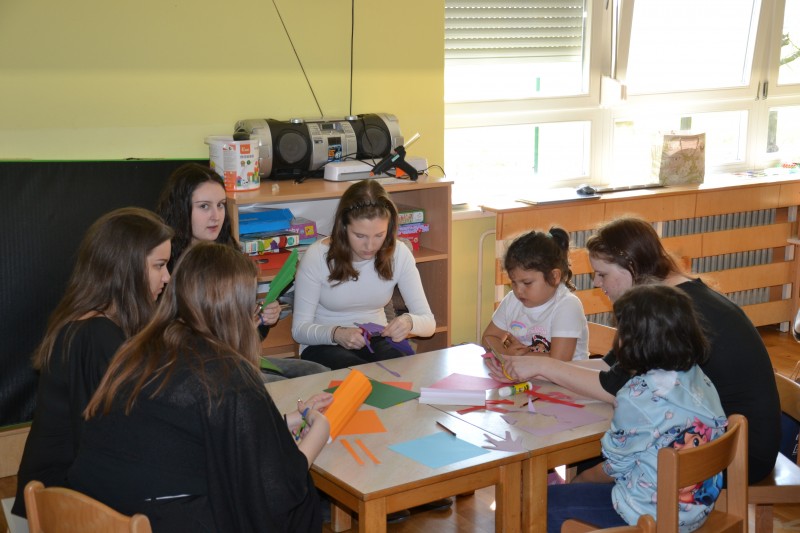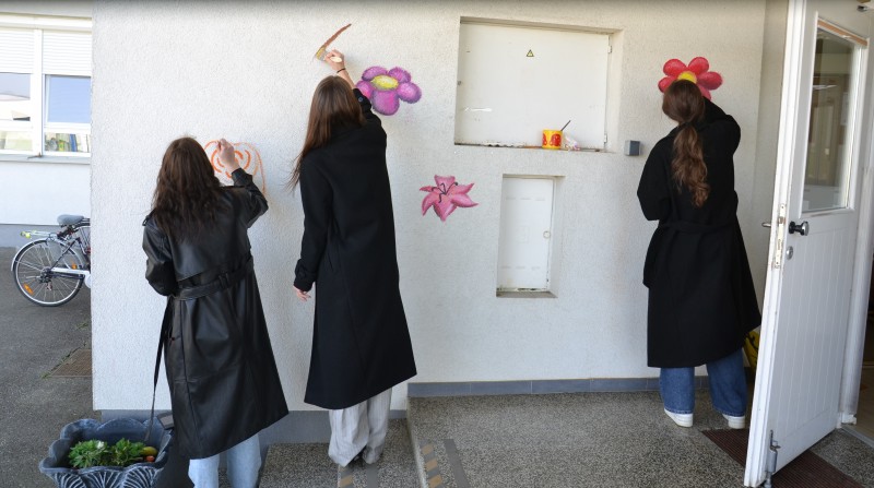 V našem vrtcu smo gostili dijakinije iz srednje poklicne in tehniške šole, ki obiskujejo program tehnik oblikovanja. Skupaj z njimi smo ustvarjali likovne izdelke za naše mamice, popestrile so nam tudi zunanje zidove na našem vrtcu ter se na koncu še podružili ob petju in plesu.