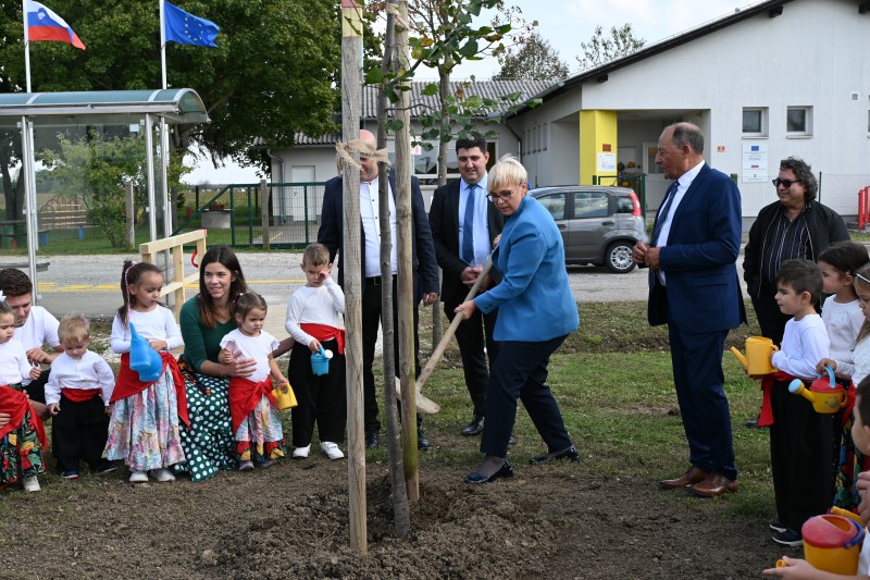 Obiskala nas je predsednica Republike Slovenije ga. Nataša Pirc Musar. S ponosom smo ji predstavili našo enoto in naše delo. Pri plesu se nam je pridružila tudi sama. Skupaj z njo smo slavnostno odprli mostiček, ki povezuje vrtec in naselje. V Drevoredu sobivanja smo z njo simbolično zasadili lipo. Predsednici smo obljubili, da bomo za njeno lipo lepo skrbeli.