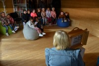 V sodelovanju s Pokrajinsko in študijsko knjižnico Murska Sobota smo spoznali gledališče Kamišibaj v knjigobežnici, ki se nahaja v naselju Pušča. Knjižničarka Metka nam je odigrala dve predstavi in sicer Janček Ježek (ljudska pravljica) in Podkovana žaba (slovenska ljudska basen). Sledile so ustvarjalne delavnice v vrtcu, ki jih je za nas pripravila Metka.