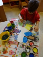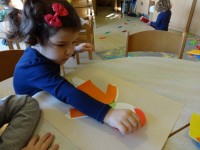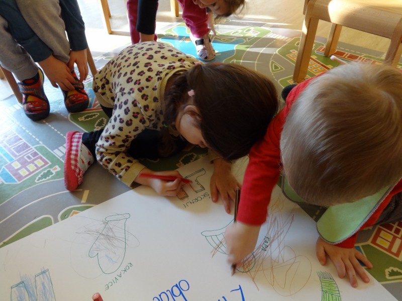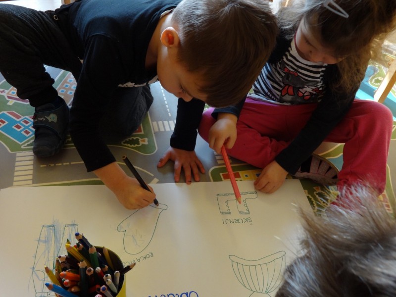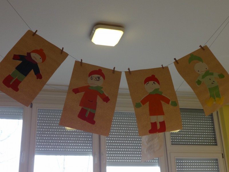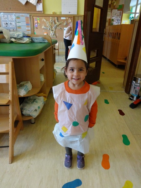 Kaj in kako obleči, vse od spodnjega perila do kape, spoznavamo in se učimo že kar nekaj časa. Vedno bolj smo spretni pri oblačenju in zaporedju oblačil. Ker smo ugotovili, da tudi naše pajacke zebe, smo jih odeli v pustne barve in obačila. Seveda pa tudi na kape nismo pozabili!