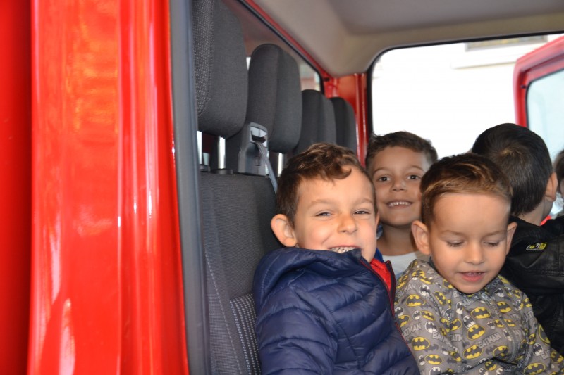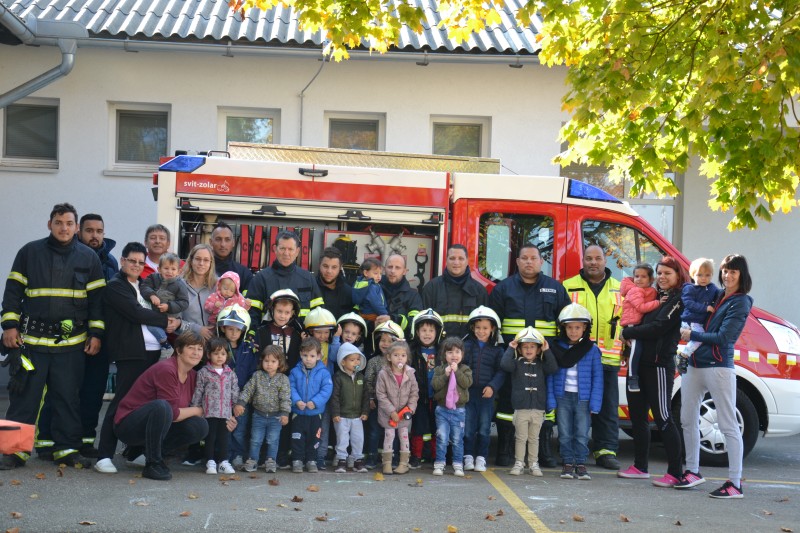 Potem so se nam prestavili na igrišče. Otroci so lahko do dobra spoznali gasilsko vozilo, se preskusili pogasiti navidezni požar s pravo gasilsko cevjo,… Skratka skupaj z gasilci smo preživeli zanimivo gasilsko dopoldne, ki pa ga drugo leto, zagotovo ponovimo.