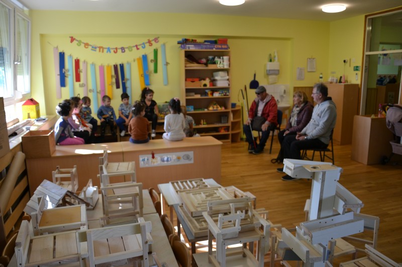 Danes smo v enoti dobili prav poseben obisk. Obiskal nas je gospod Sotlar, ki je po težki bolezni oslepel. Da bi si zapolnil obilico časa, ki ga je imel, se je začel ukvarjati z izdelavo lesenih izdelkov, katere podarja vrtcem po širni Sloveniji. Mi smo že šestdeseti vrtec, ki ga je obdaril. Srčna zahvala gospodu Borutu za podarjene lesene igrače in mize s stolčki, katere bomo z veseljem uporabljali in se z njimi igrali. Tako je s svojo močno voljo do življenja tudi najmlajšim pokazal, da v življenju nikoli ne smemo obupati.