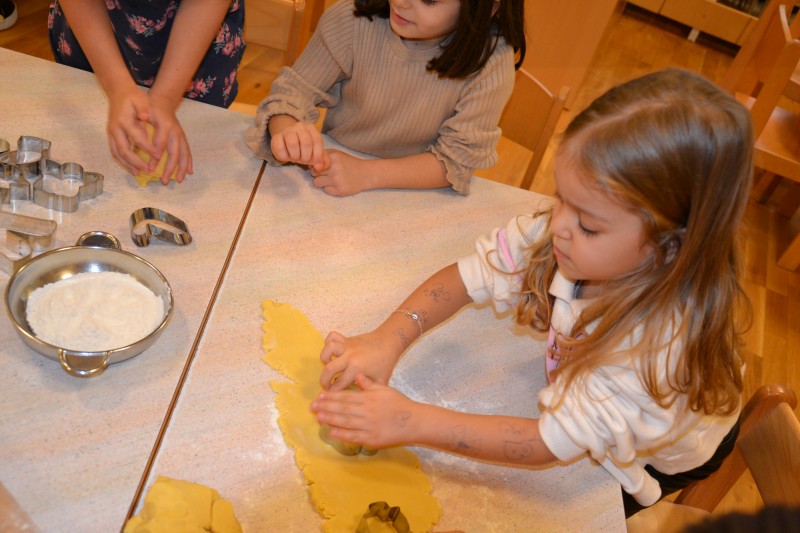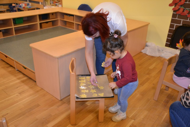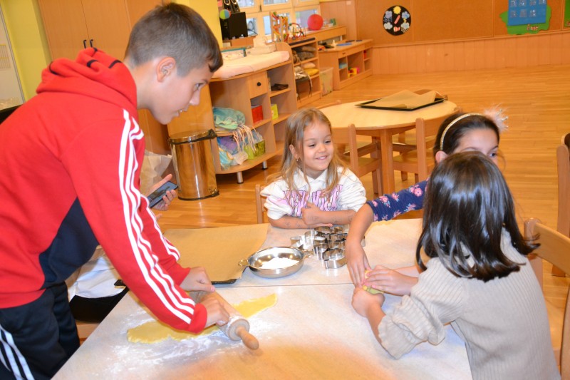 V ponedeljek smo skupaj s starši izvedli praznično delavnico. Prelevili smo se v slaščičarje in s starši pripravili odlične piškote.