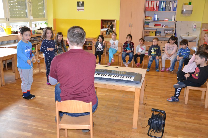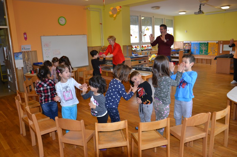 • igranje na male ritmične instrumente.