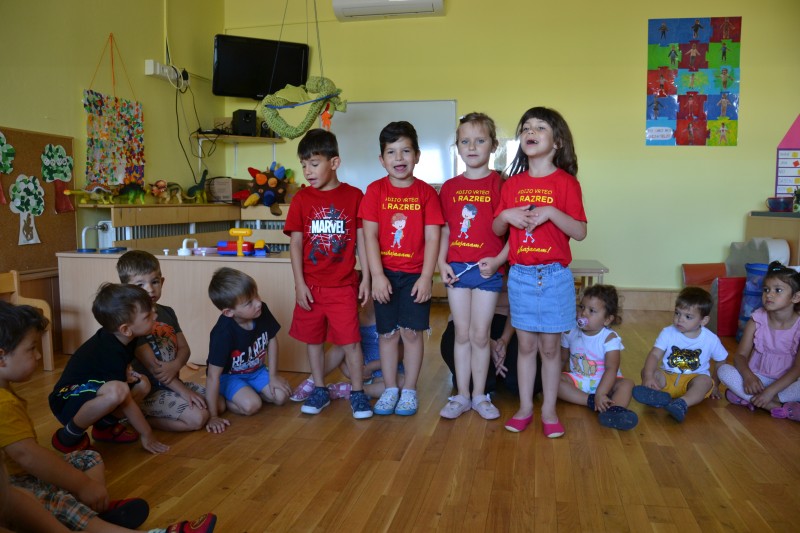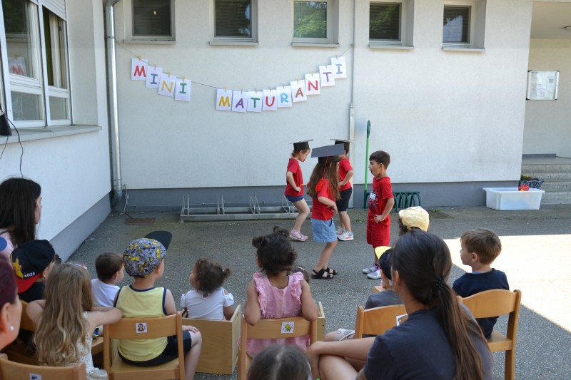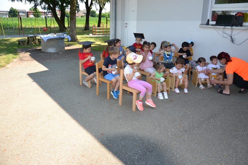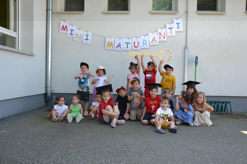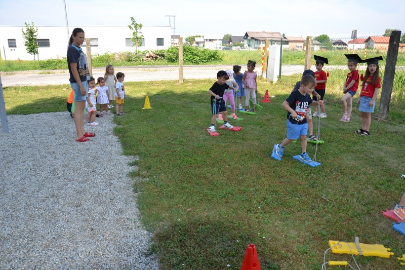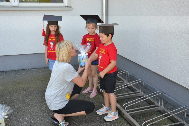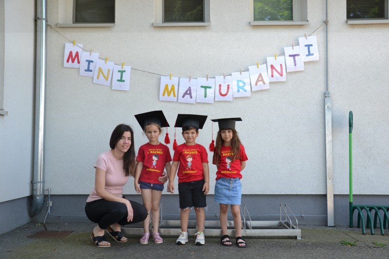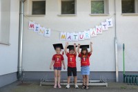 Danes smo se poslovili od Mini maturantov. Zjutraj smo opravili slavnostno malico, na vrtčevskem igrišču pa pripravili kratek program.